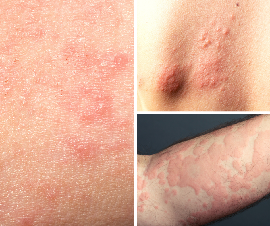 Urticaria (hives) is a skin reaction causing itchy, raised welts that may come and go. In chronic cases, it can persist for weeks or months.